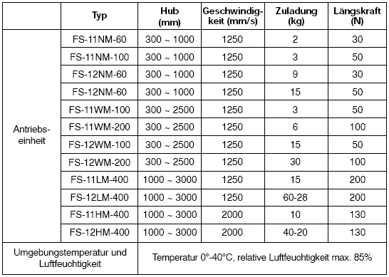 FS-Baureihe wurden besonders für lange Hübe und hohe